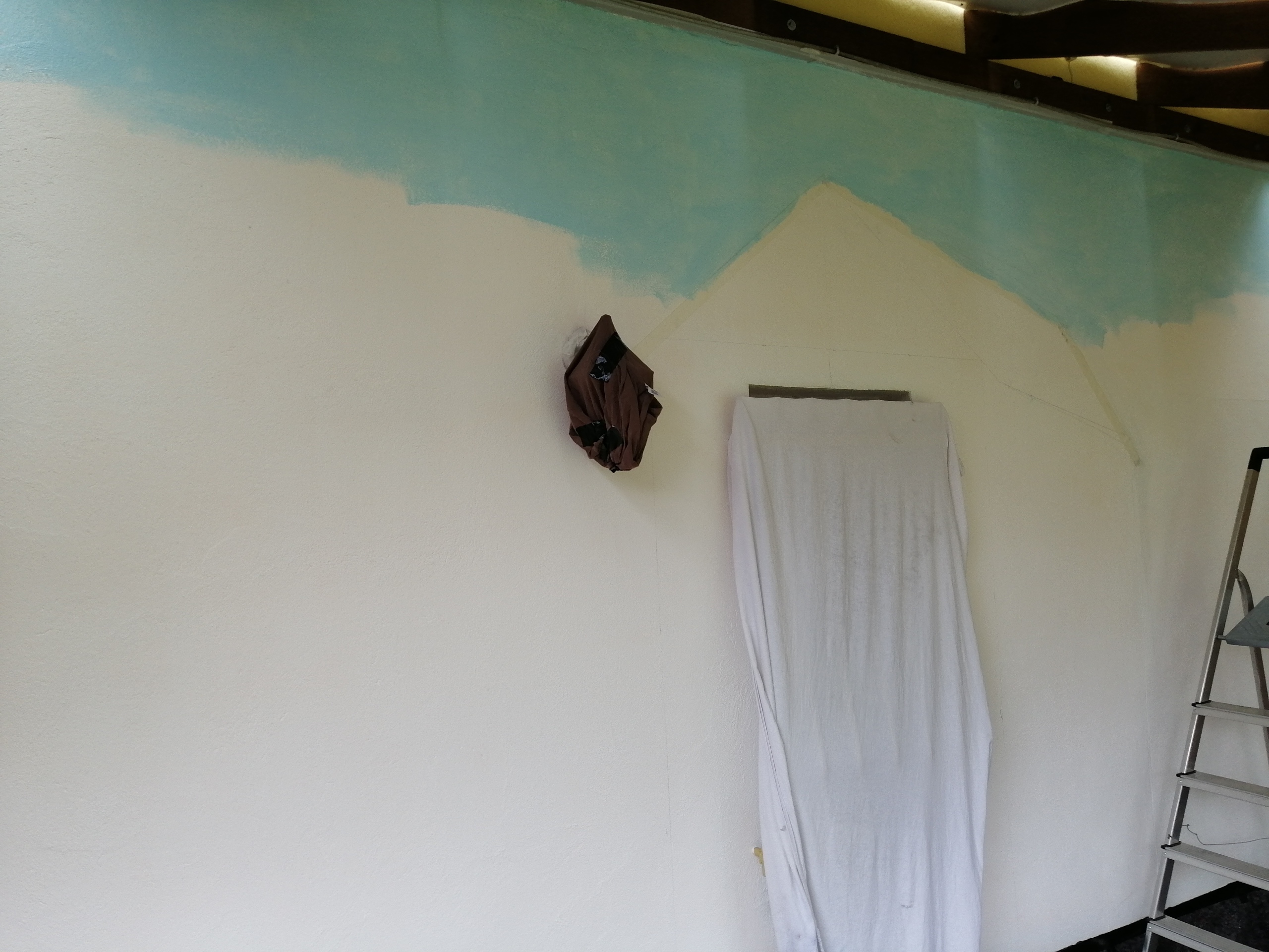 Hier eine bemalte Wand mit integriertem Fenster